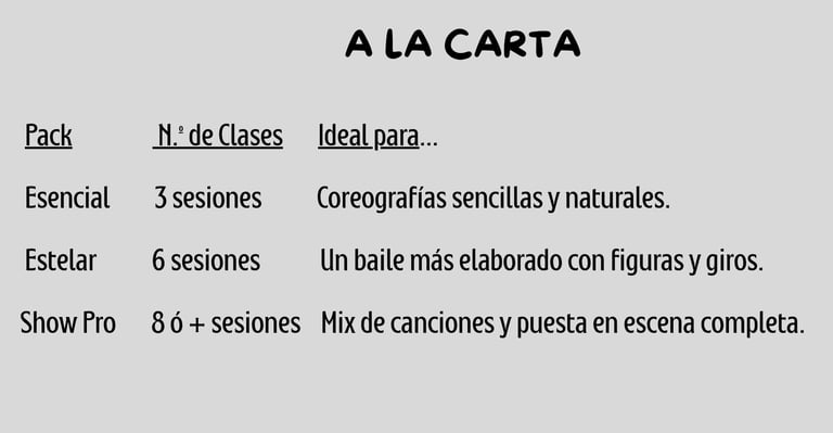 No sabemos bailar nada, ¿podemos lograr una coreografía? ¡Por supuesto! El 90% de nuestras parejas no tienen experiencia previa. Nuestra especialidad es crear pasos que se sientan naturales y cómodos para vosotros, adaptándonos totalmente a vuestro nivel.